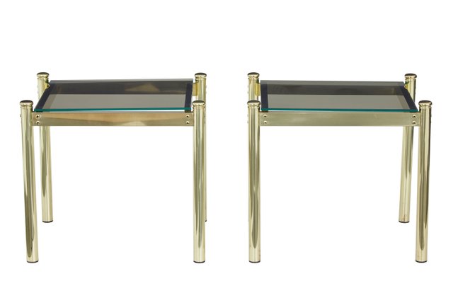 Modern pair of brass and glass drink / side tables. Chrome & glass side table with brass accents 17 1/4 x 19 1/2 x 16 3/4 End tables with four drawers looks like books 50 firm have four. Shop coffee tables and side tables at horchow. Beige nickel/silver blue multi red green brass clear bronze.