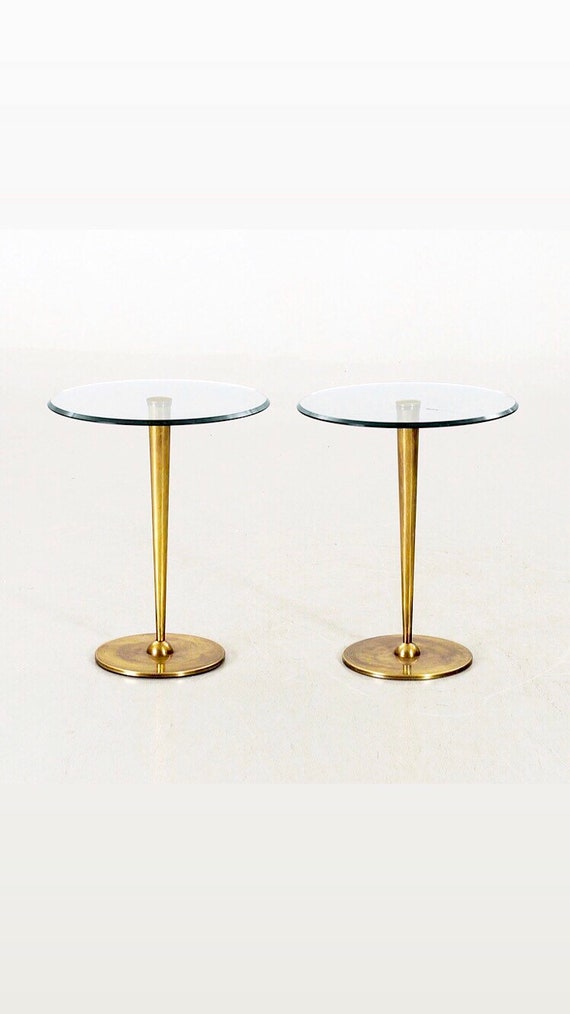 Brass And Glass End Tables : 1950 S Pair Of Vintage Brass Side Tables Interior Boutiques Antiques For Sale And Mid Century Modern Furniture French Furniture Antique Lighting Retro Furniture And Danish Furniture - Gold leaf metal and glass accent table with hourglass shape base (15.75 in.. Our selection includes wood, metal and glass accent tables that match any style. Ratings, based on 2 reviews. This industrial display box styled side table features a seamless blend of function and design. 5 out of 5 stars. This side table pairs glass and antique brass and is perched on tapering legs for an elegant look.